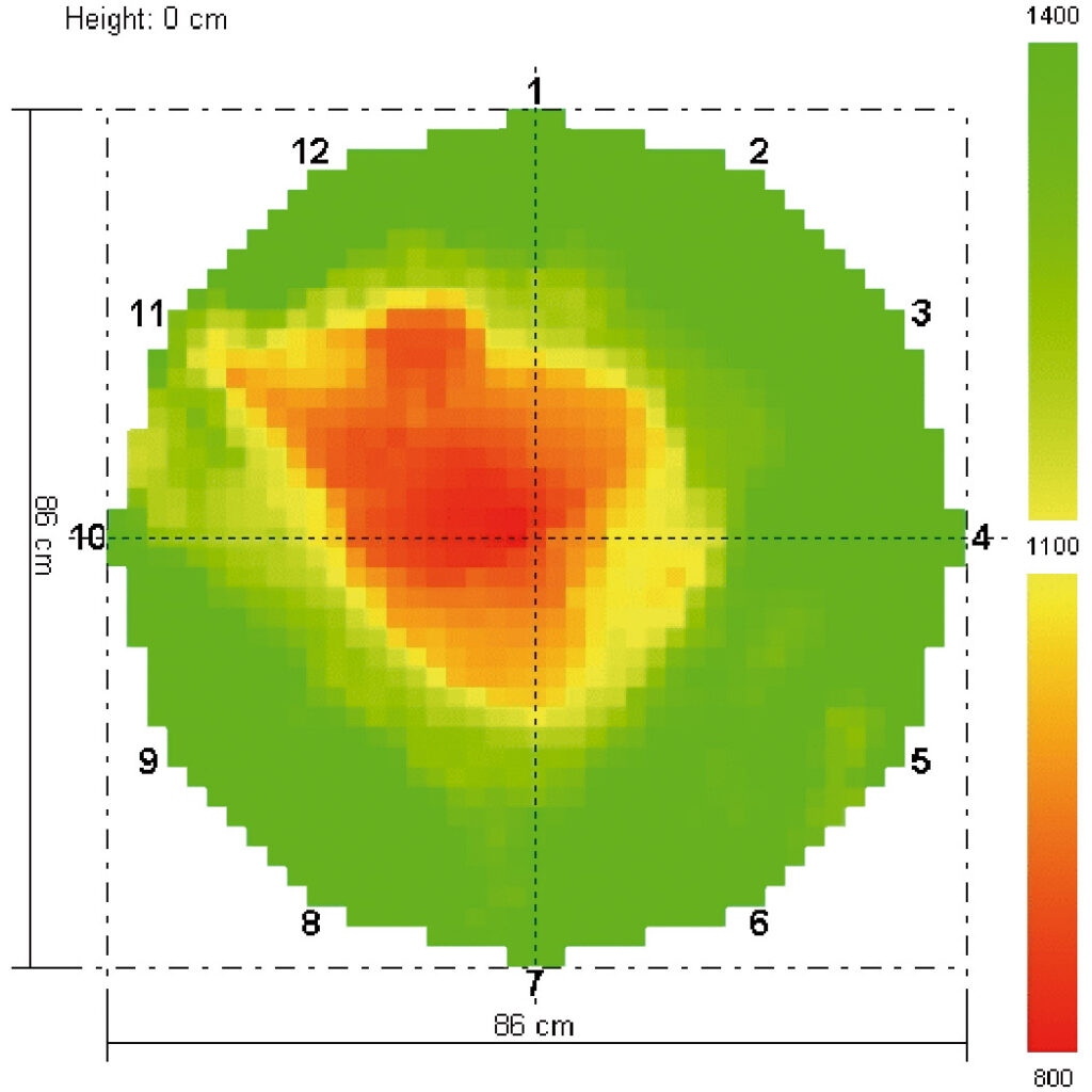 Baumscheibe mit dazugehörenden Arbotom®-Schalltomogramm